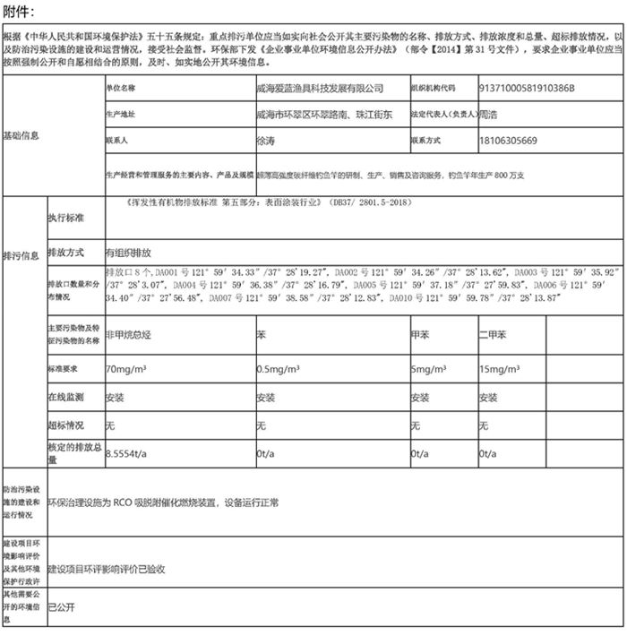2022年爱蓝渔具环境信息公开